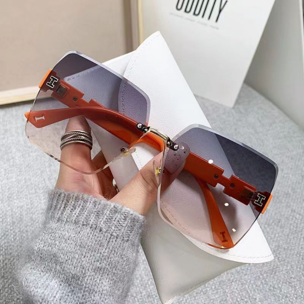 2024 Women’s Frameless UV Sunglasses Gradient Color Square Frame Temperament High Appearance Level Trend Sunglasses