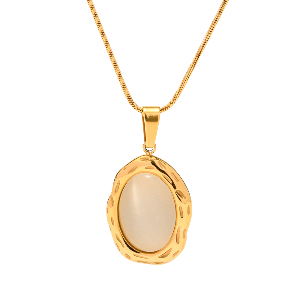 Luxury 18K Gold Plated Stainless Steel Oval Shape White Cat Eye Opal Stone Pendant Necklace Fashion Jewelry